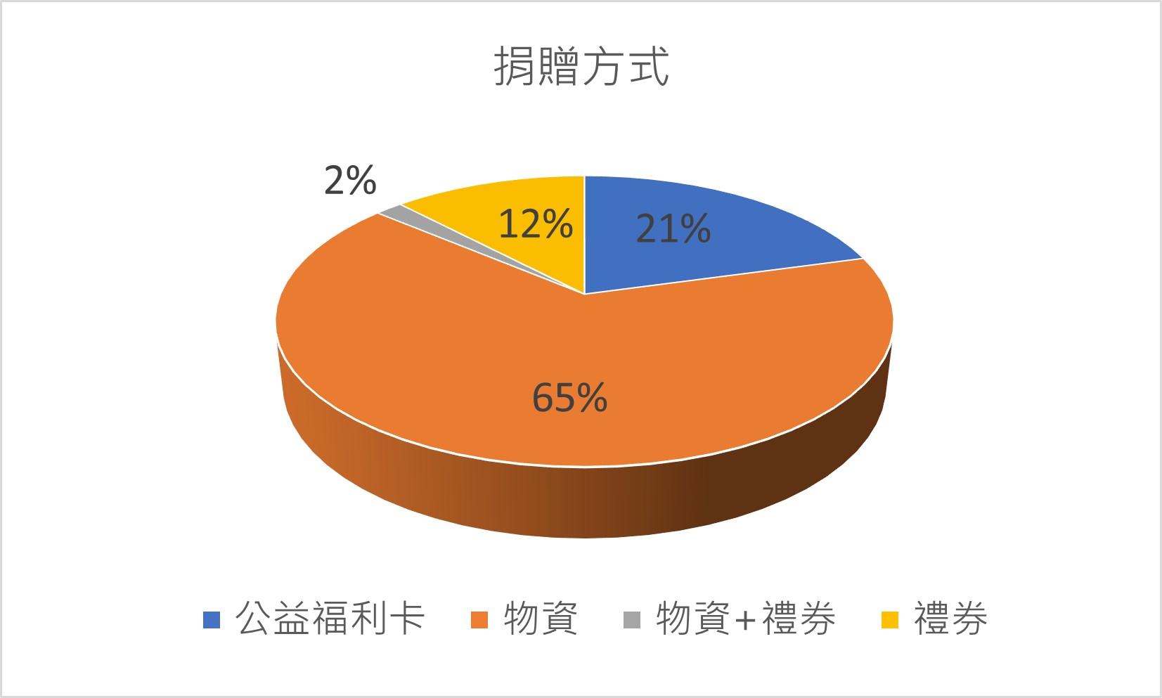 三項專案總計捐贈 58 間醫院及社褔單位,捐贈金額 2,999,348元(市價)。