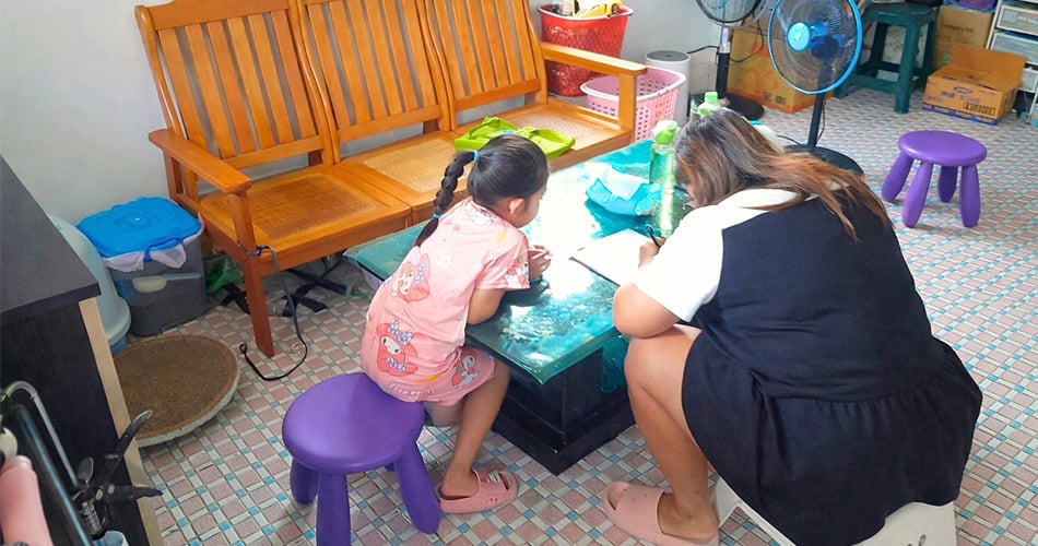 小南家在巷弄裡,門前小路僅能機車通行,門牌號碼也不按規則排列,社工訪視那天,一時找不到小南的家,跟小南聯繫後,就看到遠方出現走路一跛一跛的小南前來帶路,到小南家時,小南的小女兒也在家熱情歡迎,小女兒很乖巧聽話,小南行動不便,小女兒都會幫忙拿椅子等。