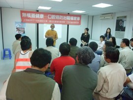 鑒於口腔癌為男性十大死因且其中高危險群為建築業,該項活動為公益性質並有益於建設公司員工健康,本會邀請元利建設工地主管、員工參與,進行口腔衛教及篩檢活動此活動可讓參與宣導活動的員工們能夠對口腔疾病有更多認識,並了解檳榔對身體的危害,願意戒食或減嚼檳榔。