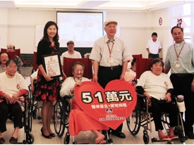 該院特於8月10日舉辦感謝儀式,活動在護理之家的大廳中展開,到院探視的家屬也共襄盛舉,司儀熱情的問候和雙方代表致詞後,由基金會執行秘書張宜君代表捐贈,羅東聖母醫院陳永興院長則回贈感謝狀。同時活動中也安排護理之家的阿公阿嬤們,展現平時音樂治療課程的成果,更安排大家同樂,過程中活力十足、笑語不斷。最後,在醫院代言人范瑋琪「感動就不遠」的MV溫暖歌聲中,完成此意義非凡的活動。