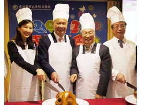 逢感恩佳節慶,北醫附院特舉行一場溫馨應景的感恩餐會暨捐贈儀式,感恩長期攜手陪伴的企業夥伴們,北醫附院準備盤盤豐盛佳餚迎賓,來賓們熱情蒞臨參與,會場氣氛熱鬧,會中由本會張宜君執行祕書代表捐贈,北醫附設醫院陳振文院長代表受贈,該院亦致贈全聯福利中心暨本會創辦人林敏雄董事長感謝牌,答謝其多年來對該院的隆情襄贊,儀式的尾聲由與會的企業代表穿著廚師服,共享火雞大餐外,更珍惜感恩節時大家齊心同聚,為台灣跨國界醫療人道救援服務層面善盡一份心力。