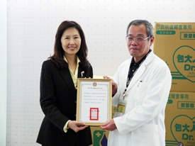 102年1月30日農曆年前夕,本會受邀參加該院舉行的捐贈儀式,儀式前,本會張執行秘書宜君特與該院李副院長文俊交流雙方於新年度的服務計畫,會中由李副院長代表接受本會捐贈後並回贈感謝狀,以表達對全聯長期服務的肯定與感謝。