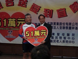 始終以實際行動展現熱愛台灣的全聯福利中心,再次以感恩回饋的心,由公司同仁自組成一支環台自由車隊、發起『環台送愛全台聯起來』活動,本站於羅東聖母醫院舉辦醫療捐贈儀式,本會於98年度捐助醫療補助金約23萬元及醫護用品約29萬元至羅東聖母醫院,以協助當地弱勢病患。