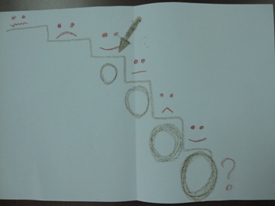 一照顧者將自己照顧失智症母親的照顧歷程畫成圖畫「母親的病情和自己的擔子越來愈重」