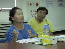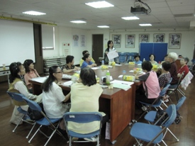 松德院區廖社工帶領照顧者們進行團體討論