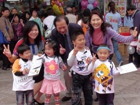 小朋友們將親手畫的卡片送給基金會