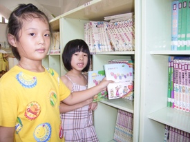 成龍國小將繪本存放於圖書館供小朋友借閱
