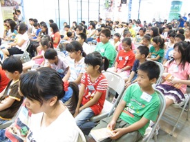小朋友們在台下等著上台領取助學金
