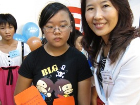 8月17日上午,在台南縣政府一樓中庭舉行「小棧結存金─回饋助學金」活動,由於蘇縣長煥智於97年起提供了縣府一樓大廳coffee bar的空間供給家扶四名自強媽媽們做為自立更生的就業平台,該小棧今年特別提撥10萬7500元的結存,捐助給助學金用,本次活動中蘇縣長除感謝小棧媽媽們的付出,也對本會表達深深的謝意。住在後壁就讀四年級的王亮琪小妹妹更朗誦謝卡表達感激,鼓勵同學們更加用功唸書,做一位聽話孝順的孩子。