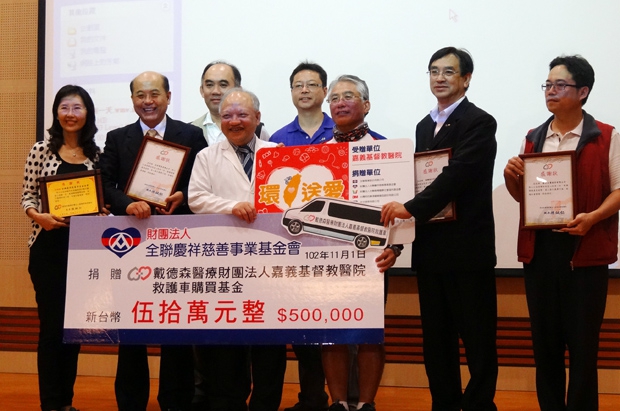 嘉義基督教醫院於1958年成立,為區域醫院,但已承擔類似醫學中心的責任,提供了雲嘉地區病人完整的醫療服務,而院內兩台救護車,已達使用年限,應依規定汰換,全聯慶祥慈善事業基金會審慎衡酌該院需求,為提升該院服務效能,嘉惠雲嘉南地區民眾,贊助該院救護車壹台經費50萬元整,以發揮臨門一腳力量。