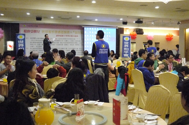 世界和平會自96年推動「搶救受飢兒」服務來,每年亦舉辦多場歲末年終感恩餐會活動,邀請各地生活困難的受助家庭一同聚餐,透過齊聚一堂的機會,讓孩子們感受社會溫暖關懷,給予奮發向上的鼓勵,並將惜福感恩的種子,深植在他們小小心中,本會今年受邀出席,前往共襄盛舉。