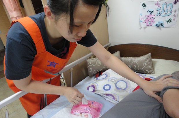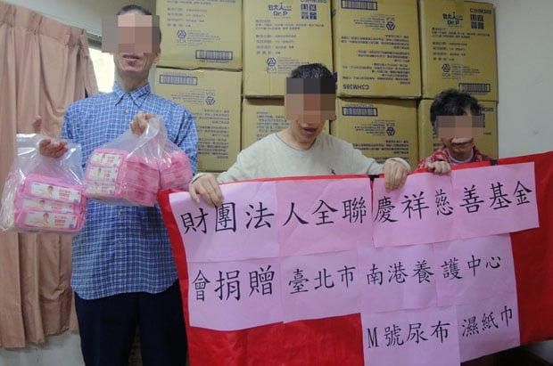 本會自100年起,今已三度接獲台北市南港養護中心實物捐贈申請案,該中心屬小型社區化機構,目前主以收容中重度之中高齡心智障礙者,以提供銀髮憨兒在地老化之終老之家,過去本會兩度捐贈該中心打掃清潔物資,以協助機構環境清潔。本會今年3/14再次前往該中心拜訪,得知服務對象逐漸老化,所需物資逐漸增加,且部分家庭多屬失親孤兒、低收入戶、高齡臥病雙親,以致無力負擔日常生活耗材費用,本會得知該中心有18位服務住民,生活自理能力不佳,且103年未獲得其他捐助單位補助護理物資,特贊助紙尿褲324包及濕紙巾486包,以維護銀髮憨兒身體清潔,進而提升生活照顧品質。