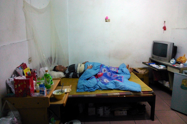 套房內,一張床,簡單的家具,獨居的老王曾罹患腦瘤而開刀切除,現因車禍導致腰椎椎間盤移位,手術後無法行動,只能靜靜地躺臥在床上,等待傷口癒合,社工訪視時,距離手術已過了四個月,但傷口的癒合狀況卻不佳,也遲遲無法進行後續的復健,老王無法外出工作,生活開銷只能依賴每月4,700元的社福補助,卻入不敷出,不足支付房租、醫藥費及生活開銷,可能面臨被房東趕出的情形,也因為積欠醫藥費,張小姐每次幫忙去拿藥時都被追討,使得老王也不好意思繼續欠費拿藥。
