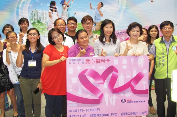 屏東縣因地形狹長在物資配送及發放較為不便,為使全縣弱勢民眾獲得更有效的資源運用,全聯慶祥慈善事業基金會自101年起與屏東縣政府合作「全聯物資銀行-愛心褔利卡」專案,迄今已協助弱勢家庭1231戶,實際加值金額約530萬。屏東縣政府有感愛心褔利卡的發放使弱勢家庭在生活上獲得實質且有用的幫助,特於103年8月5日舉辦捐贈儀式,當日活動邀請受助案家及受助單位現身說法,使在場的與會人員更加瞭解愛心褔利卡的重要性及協助層面。「愛心褔利卡」在每個弱勢家庭艱困的生活中注入一股暖流,每月1000元的加值金舒緩了經濟壓力,也溫暖每個受助家庭的心。