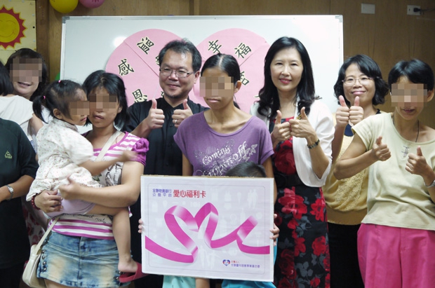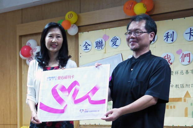 全聯福利中心林敏雄董事長基於「取之於社會、用之於社會」的出發點,成立的財團法人全聯慶祥慈善事業基金會於100年首創的「全聯物資銀行_愛心福利卡」專案,天主教會台中教區附設身心障礙機構徐世昭執行長有感於社會資源有限的情況下,因此從民國95年開始積極推動天主教會台中教區轄下八家身心障礙機構資源整合,對經濟困難的身心障礙家庭主動提供現有物資助他們度過困境,但有時卻無法滿足到案家實際需求。103年開始財團法人全聯慶祥慈善事業基金會每個月提供慈愛教養院150張愛心福利卡,每月每戶儲值金1,000元,受惠家庭自行持卡至各全聯福利中心選購生活物資,提升受助家庭的自主性及基本生活保障,自1-6月份已有152戶共計764人受惠,高達近百萬補助挹注給這群弱勢家庭。