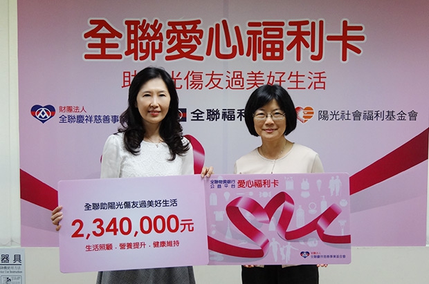 陽光基金會特於年8月27日舉辦捐贈儀式,由本會張宜君執行長代表受贈,該會舒靜嫻執行長表示,愛心福利卡的援助方式,讓受助家庭不僅可依自己的需求選購民生必需品,並協助其生活照顧、營養加成、健康支持之外,更可以享受「美好生活 人人平等」的權利,而非被動地接受救濟物,兼顧了受助者的尊嚴。