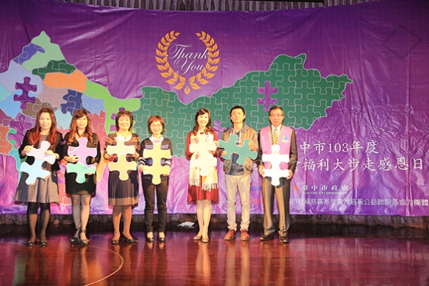 台中市政府於去年(103)歲末,為感謝各界對台中市弱勢民眾的扶助,12月12日於中僑花園飯店舉辦「台中市1212社會福利大步走感恩日」,感謝民間社福團體的奉獻付出,讓台中市更美好。