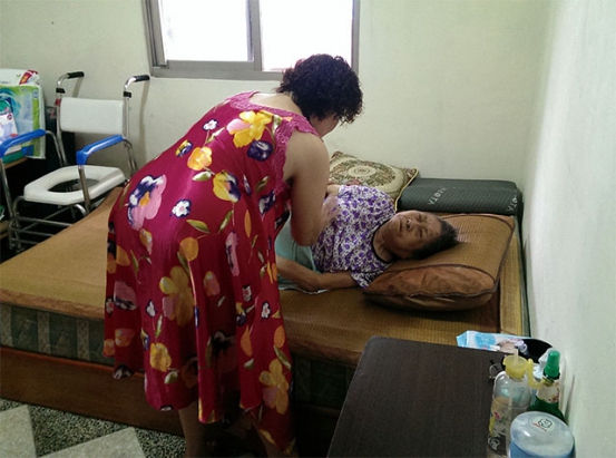 這一天,社工來到阿蘭家中訪視,即便經過休養數個月,阿蘭的腳仍無法受重,阿蘭吃力地幫媽媽翻身、用心地替媽媽灌食,雖然生活困難,但看不出阿蘭的悲情,反倒是十分樂觀,阿蘭說:「日子雖然辛苦,但不能讓自己看起來更沒價值,這樣才會有正面的能量!」