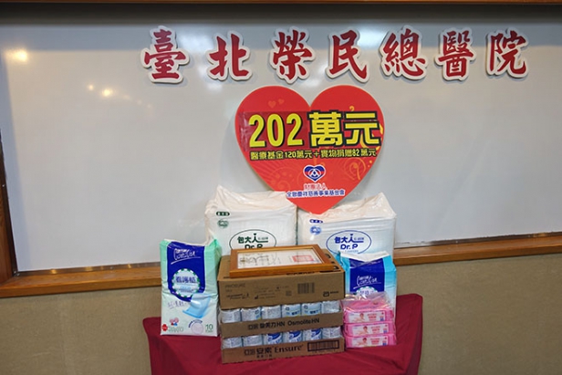 全聯慶祥慈善事業基金會為照顧貧困病患,自97年起與台北榮總合作醫療補助金暨實物捐贈,期能為經濟弱勢病患及其家庭減輕負擔,去年(103)協助61名病患獲得醫療費用,耗材受惠人次為2,697人次,今年又捐助120萬元醫療補助金及市值82萬元的紙尿布、濕紙巾、看護墊、營養品等,該院為感謝本會長期以來之愛心,特於104年3月12日下午二時舉行「全聯之愛在榮總」捐贈儀式,由該院何善台副院長代表接受本會張宜君執行長捐贈,並回贈予感謝狀。