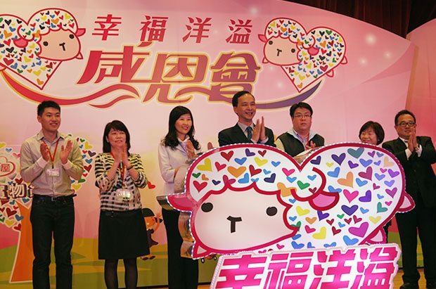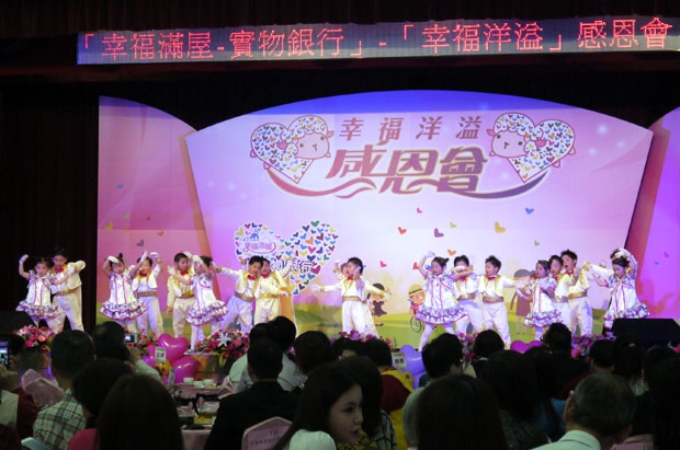 新北市社會局特於104年3月19日,舉辦「幸福滿屋─實物銀行」【幸福洋溢】感恩會,感謝企業及民間團體的長期支持。在幼兒園小朋友活力四色的開場後,我們共同回顧了103年的成果展現,讓現場氣氛熱鬧非凡。全聯慶祥基金會張宜君執行長隨後亦受邀上台參與感恩儀式,將象徵民眾的各項福利需求,由多位代表投入幸福洋溢的箱中,期待在大家齊心的努力下,讓所有新北市民都能享受到更豐碩的果實,幸福洋溢一整年。