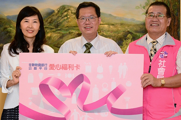 桃園市政府社會局為感謝本會年度捐贈價值240萬元的愛心福利卡,特於5月26日舉辦捐贈儀式,由本會張宜君執行長代表捐贈愛心福利卡予桃園市鄭文燦市長及社會局古梓龍局長,並由鄭市長親自致贈感謝獎碑予本會,儀式中,亦邀請受助戶阿玲蒞臨會場,阿玲為越南籍外配,隻身嫁入台灣,先生因病不幸長年入住呼吸照顧病房醫治,阿玲獨子撫養照顧兩名就讀國小的幼子,印刷廠計時的工作收入,常常不敷使用,為減輕阿玲的經濟負擔,社會局社工評估核發本會愛心福利卡,透過購買全聯新鮮蔬果及肉蛋食品,補足兩子成長就學期間之營養所需,更讓阿玲一家三口感受全聯企業照顧桃園市民的用心與付出。