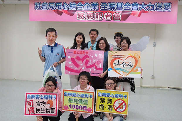 全聯福利中心及全聯慶祥慈善事業基金會照顧弱勢不遺餘力,104年持續與台南市政府社會局合作「全聯物資銀行_愛心福利卡」專案,藉由每月1,000元儲值金,讓400戶長期經濟弱勢之家庭可就近至全聯門市,購買所需要的民生用品,本會投入金額預計達到四百八十萬元。為感謝本會「取之於社會、用之於社會」的善心義舉,台南市政府社會局特於6月25日在台南市安平區公所舉辦感恩記者會。