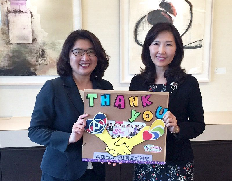 為感謝財團法人全聯慶祥慈善事業基金會(以下稱全聯基金會)多年來提供「全聯物資銀行-愛心福利卡」與媒合「食物券」方案,高雄市弱勢家庭共計2,700餘戶受益,捐贈金額高達2,051萬餘元,社會局局長姚雨靜17日特別親自北上拜會全聯基金會執行長張宜君,致贈感謝獎座與受助家庭及個案孩子們的手作感謝卡片,感謝該基金會對高雄市弱勢家庭長期資助。