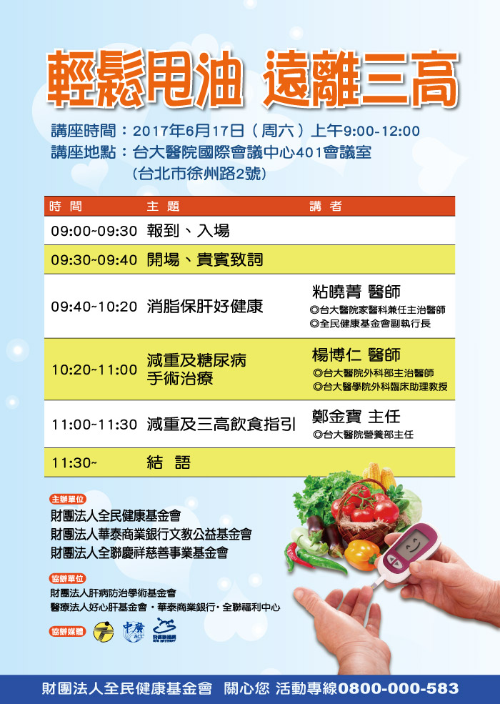 敬邀參加 2017.6.17 「輕鬆甩油 遠離三高」健康講座(免費參加)