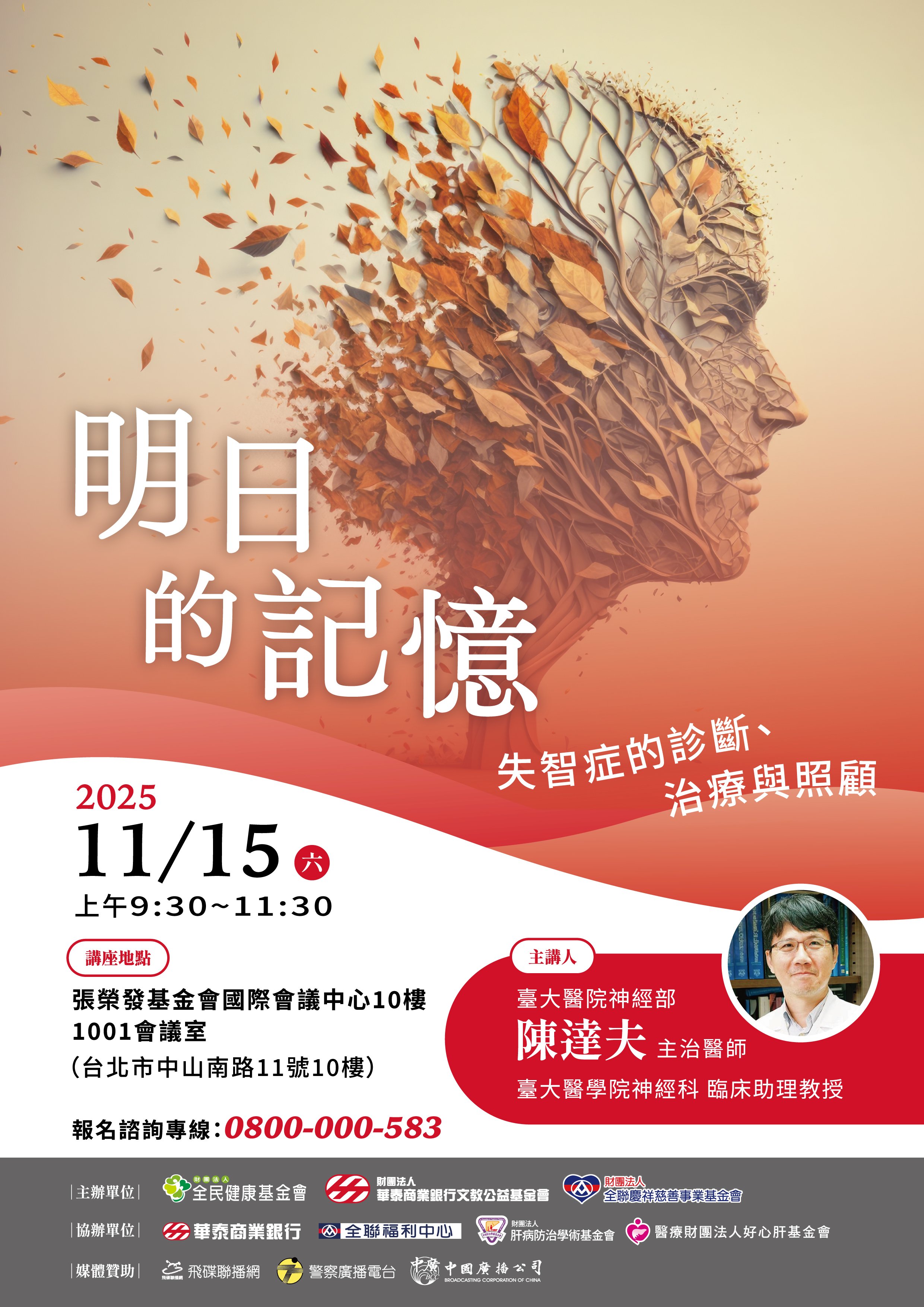 敬邀參加 11/15華泰健康講座(免費入場)—明日的記憶:失智症的診斷、治療與照顧