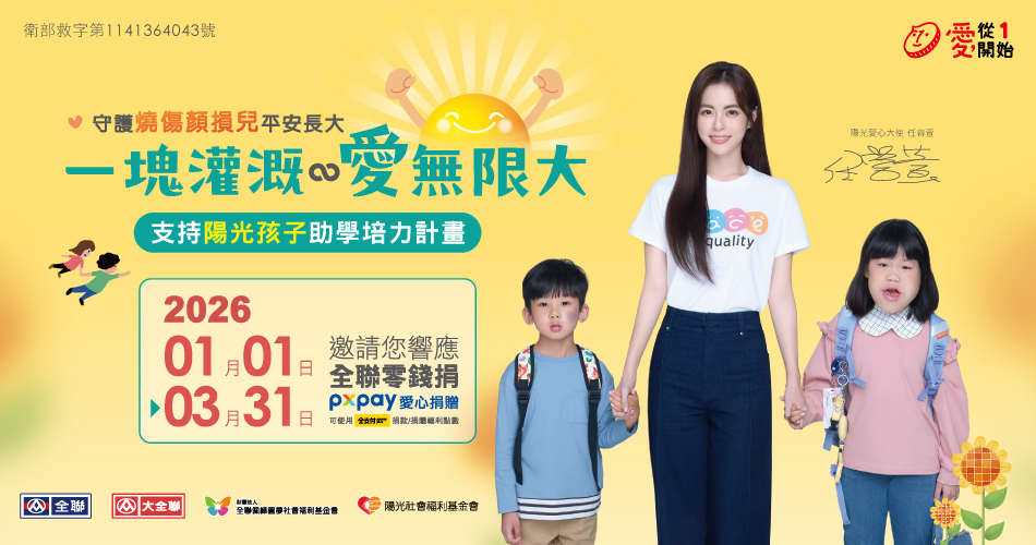 全聯佩樺圓夢社會福利基金會長期關注弱勢兒童的學習與生活需求,攜手陽光社會福利基金會推動「陽光孩子助學培力計畫」,透過零錢捐與點數捐行動,支持燒傷顏損兒童在求學階段獲得穩定陪伴與實質協助,為孩子打造更友善的學習環境。