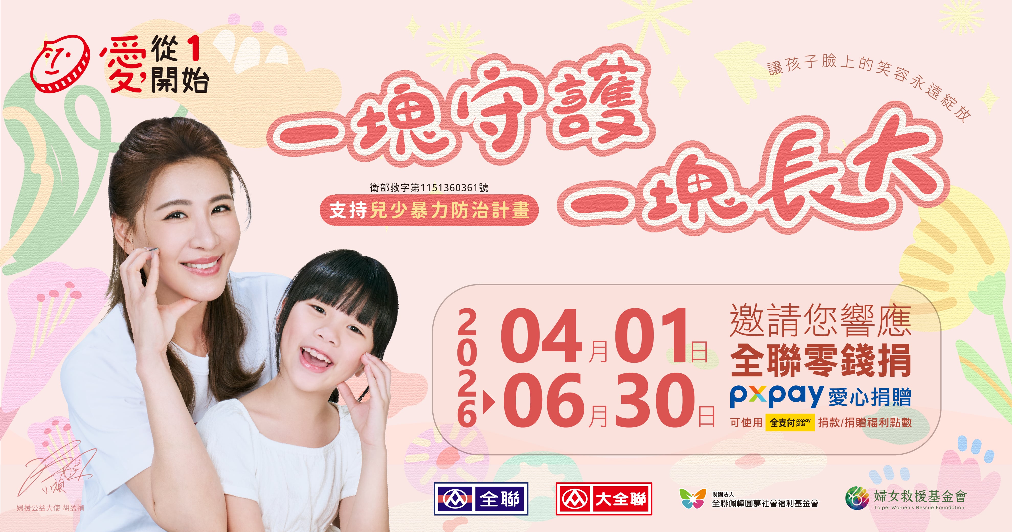 【全聯愛心零錢捐活動】小禎邀您一起支持:婦女救援社會福利事業基金會「一塊守護,一塊長大」