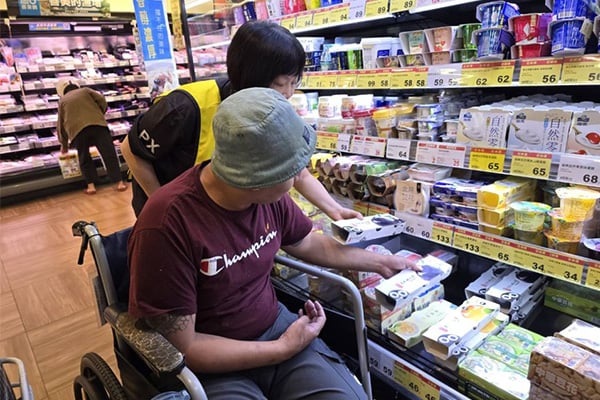 全聯慶祥基金會在志工耐心引導與挑選下,身障者們親手選取自己喜愛的零食與生活用品。